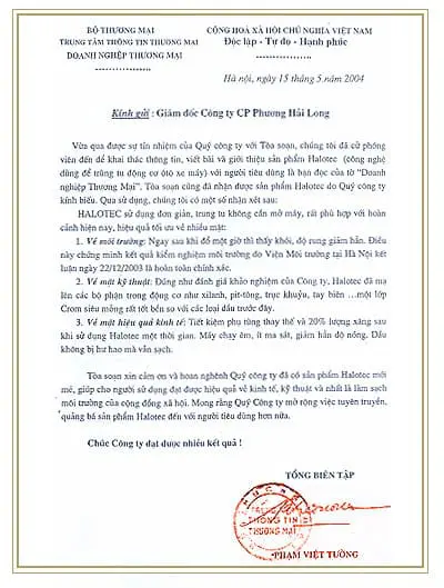 BẰNG KHEN HALOTEC SẢN PHẨM CHẤT LƯỢNG
